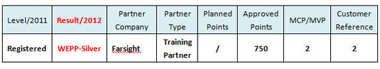2012年3月14日,微软公司联合华清远见教育科技集团对外宣布:根据华清远见提交的2011年度活动报告及全年表现,经过微软认真审核,终确定:华清远见荣获2012年度微软嵌入式银牌合作伙伴!特别需要说明的是:所有银牌合作伙伴只有10家左右,华清远见也成为唯一获此殊荣的专业培训机构。